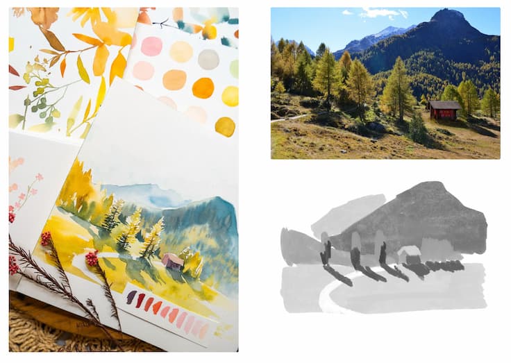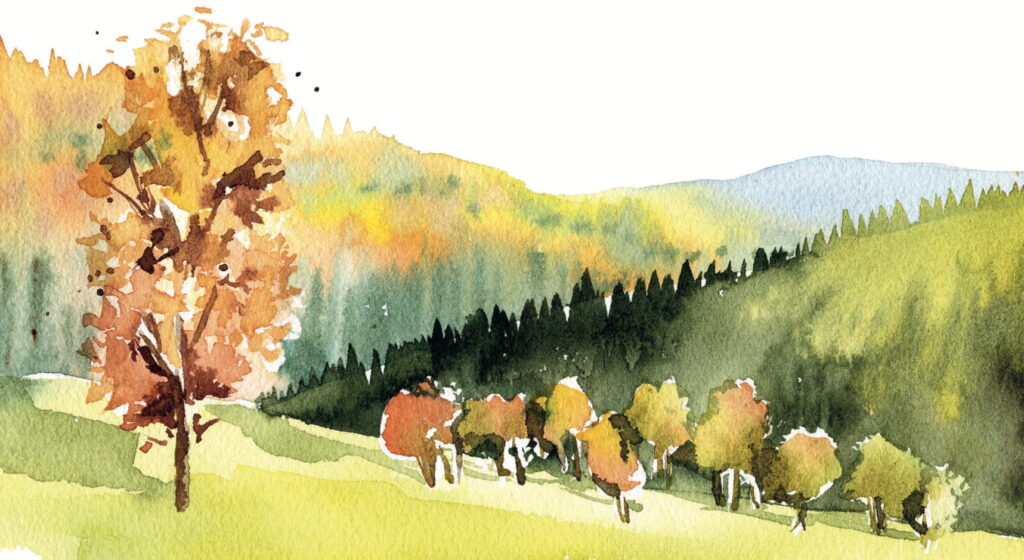 #2. Un incontournable des inspirations automne à l’aquarelle : les paysages